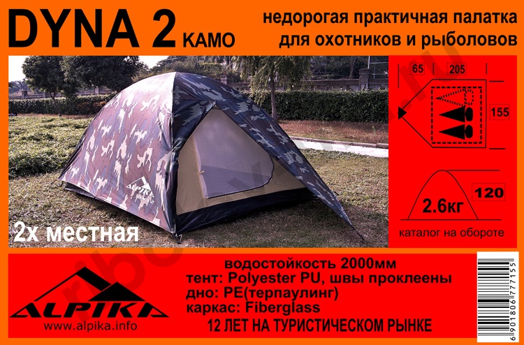 Палатка Alpika Dyna-2 camo, 2-х местная