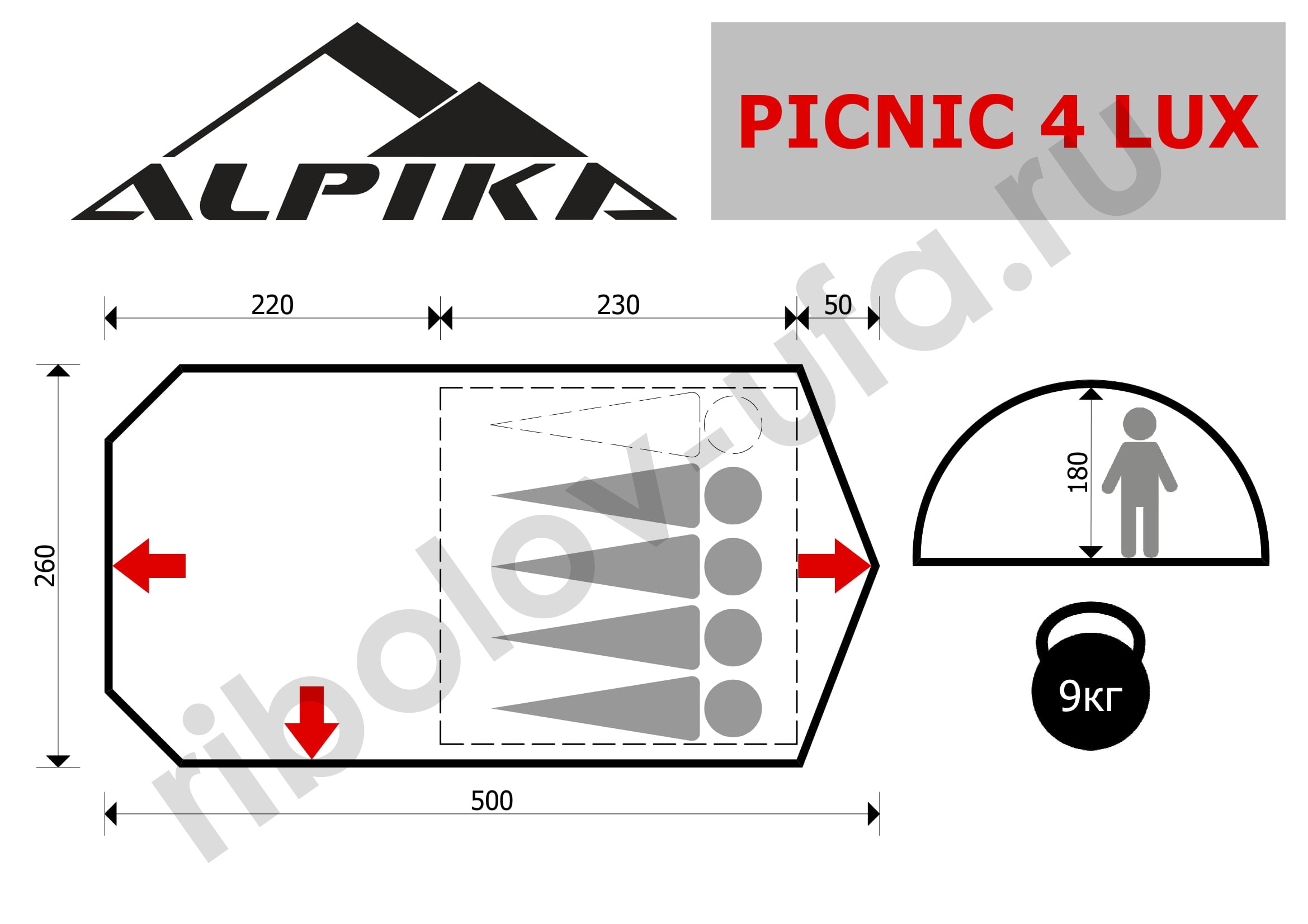 Палатка Alpika Picnic-4 lux, 4-х местная