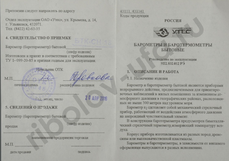 Барометр БТКСН-18 корпус береза